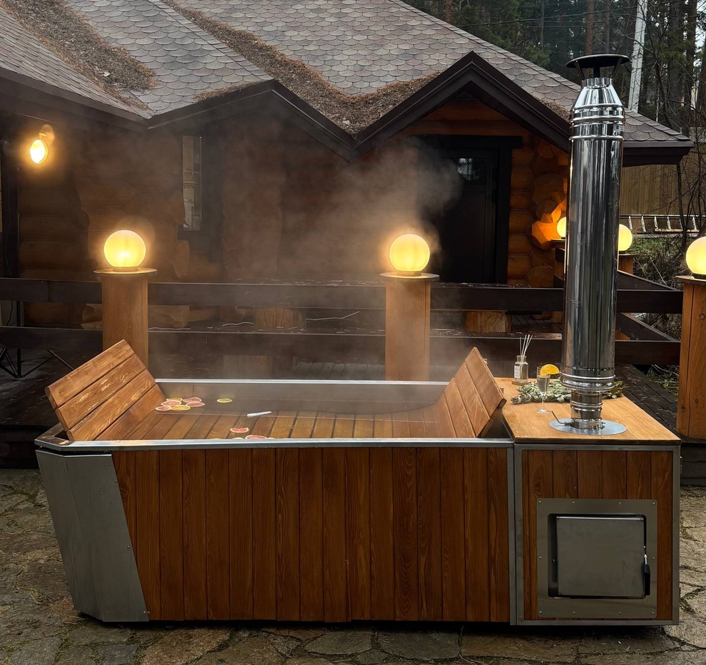 Купель становится элементом отдыха, который создаёт настроение. Красиво смотрится на террасе, возле бани или рядом с домиком.